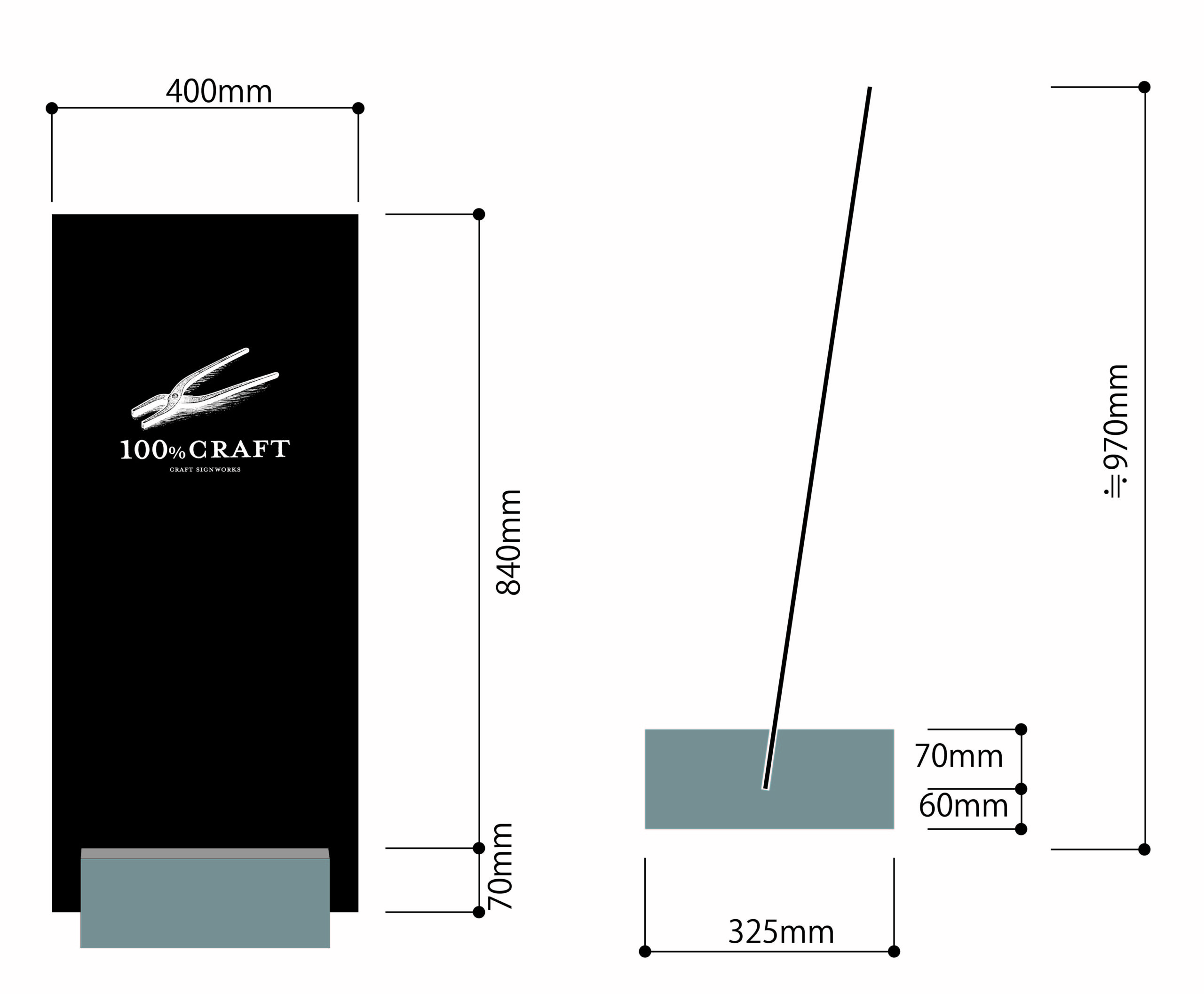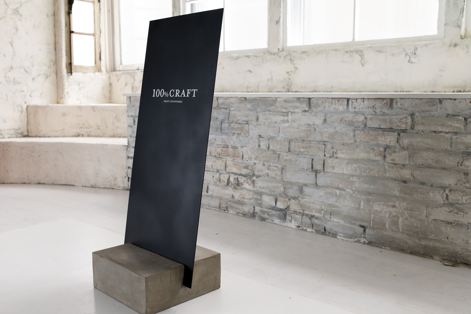 鉄板一枚で構成されたシンプルな看板「STILL」に、黒皮鉄塗装の重厚感を宿したバリエーションモデル。